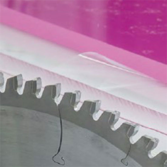 These blades minimize cutting marks and eliminate the need for reworking visible edges. The tooth geometry is specifically designed for a variety of plastic materials, but especially thermoplastics, PMMA panels, polycarbonate panels, abrasive thermosets, anti-fingerprint plastics, and conventional plastics.
